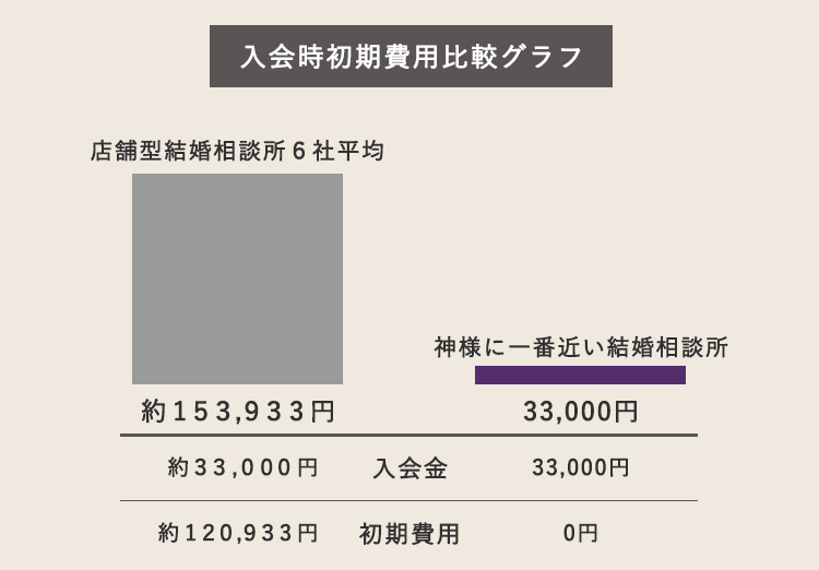 入会時の初期費用平均を店舗型結婚相談所6社のWEBサイト公開情報より算出(2025年9月現在)